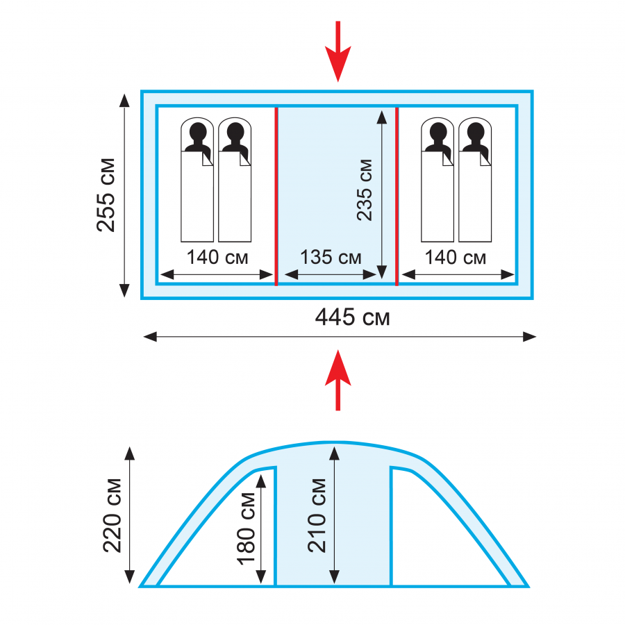 Размер внутренней палатки ДхШхВ, см: 235 х 140 х 180