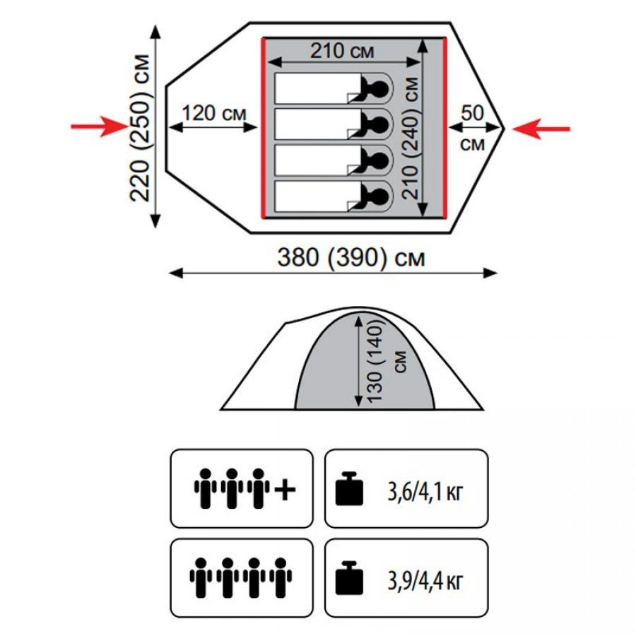 Размер внутренней палатки ДхШхВ, см: 210 х 240