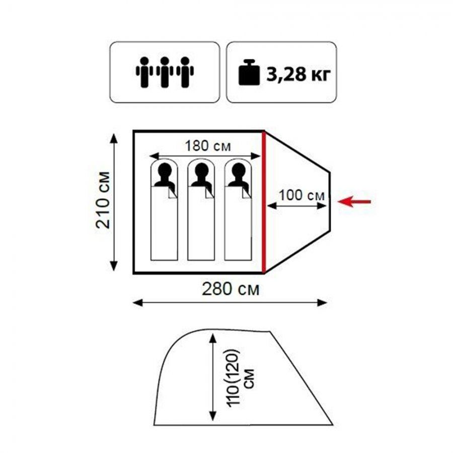 Размер внутренней палатки ДхШхВ, см: 180 х 210