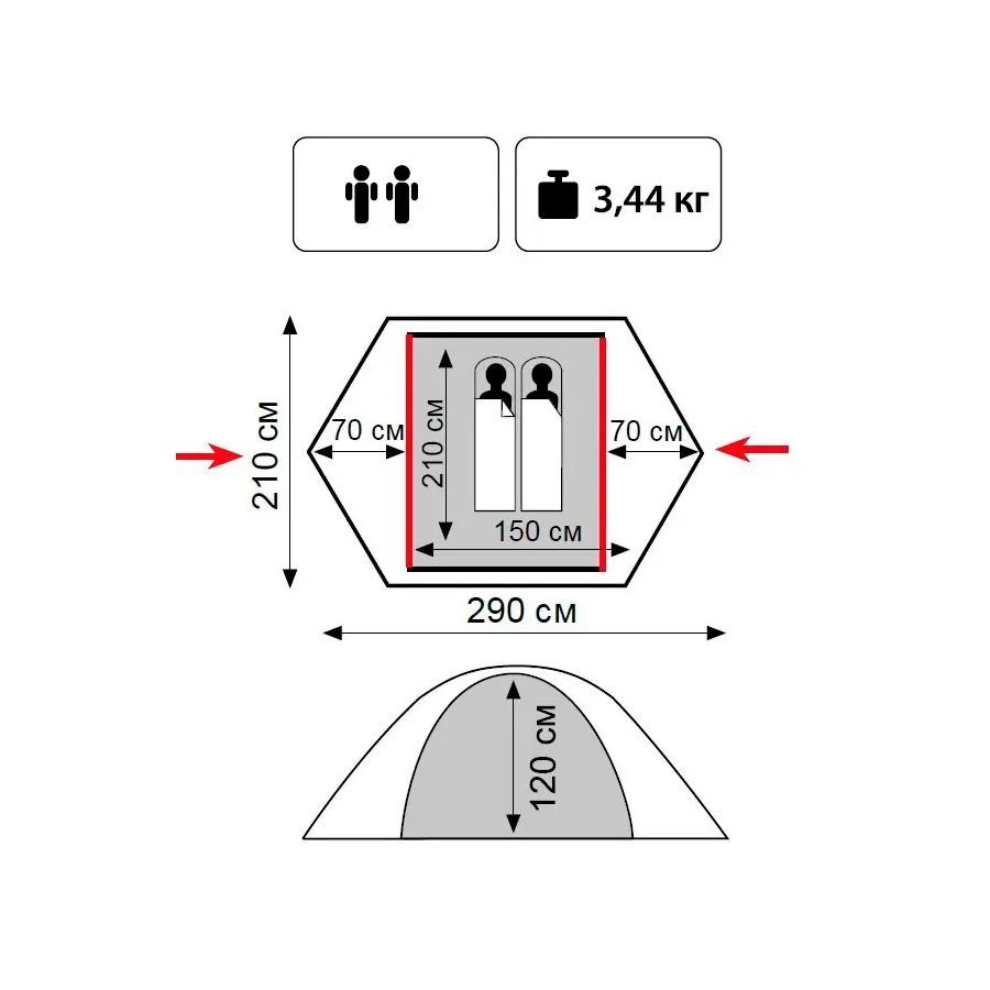Размер внутренней палатки ДхШхВ, см: 150 х 210