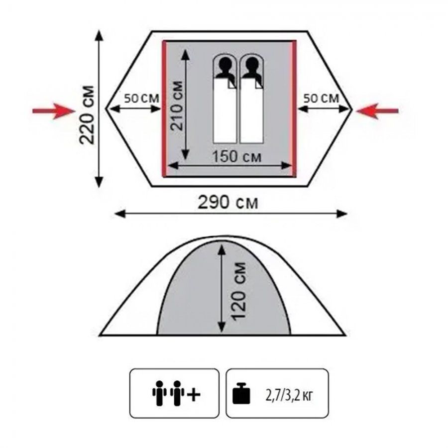 Размер внутренней палатки ДхШхВ, см: 210 x 150
