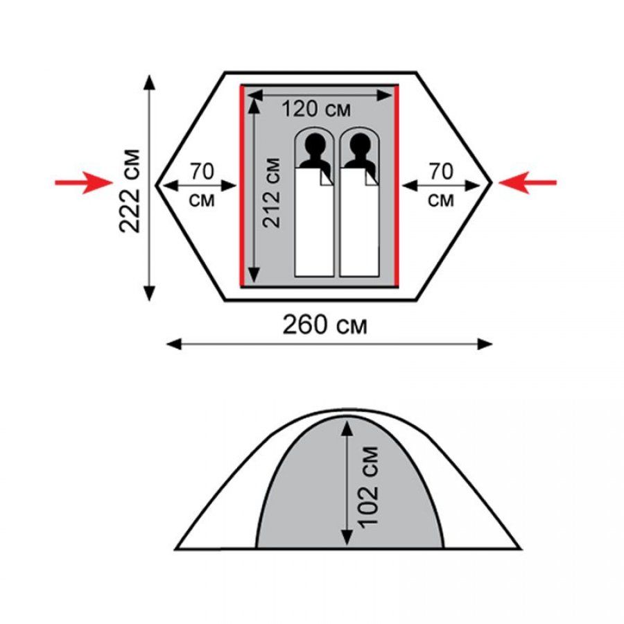 Размер внутренней палатки ДхШхВ, см: 212 х 120 х 102