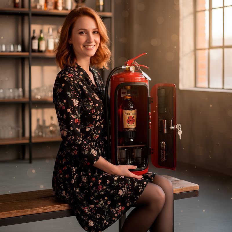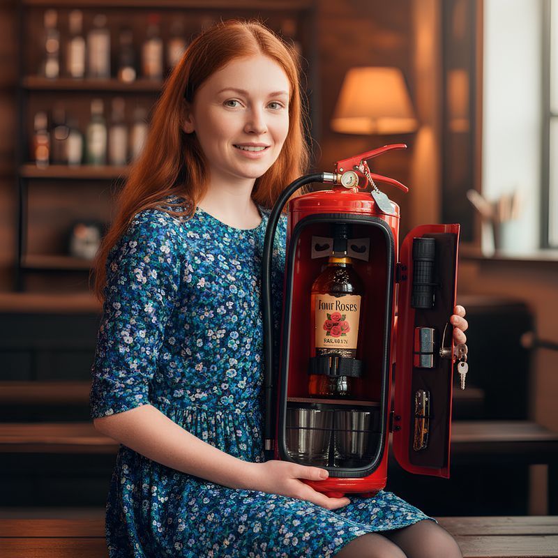 Специально для Вас, мы сняли огнетушитель с производства, и создали для Вас чудо огнетушитель бар. Подарочный набор для мужчин выполнен в стильном и оригинальном дизайне, что делает ее не только практичным, но и красивым элементом декора для домашнего бара. Легко транспортируется и подходит для использования как дома, так и на природе. Внутри отделка из экокожи, место для хранения бутылки любимого напитка из ламинированного МДФ цвета венге, положили: Зажигалку бензиновую(не заправленную), Фонарик светодиодный, батарейки в комплект не входят, Нож складной, бирдекли(подставки) под стаканы - 3 шт., так же 2 стакана для виски. На огнетушитель нанесено полимерное (ударостойкое) покрытие, так что этот мини-бар очень сложно испортить. Оригинальный подарок для мужчины почти готов, осталось купить бутылку любимого напитка и новый год для будущего владельца данного бара будет идеальным. Этот подарочный набор идеально подойдет для мужчин, которые ценят хороший алкогольный напиток и любят устраивать вечеринки. Он также может стать отличным подарком на День Рождения, Новый Год, Юбилей или любое другое торжество. Этот набор для мужчин также может стать прекрасным подарком для коллеги, босса, руководителя, начальника или директора. Данный набор обязательно порадует любого мужчину, который ценит хороший алкоголь, которых сложно удивить! Обращаем Ваше внимание, что напитки в комплект не входят!